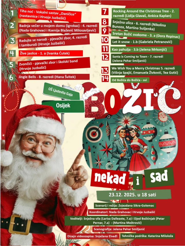 Pozivamo sve učenike, roditelje, bake i djedove, braću i sestre, prijatelje i znance da nam se pridruže u radosnom iščekivanju Božića i osjete čaroliju blagdana koju smo pripremili.