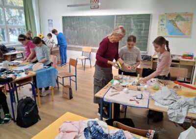 Da bismo učenicima približili ljepotu knjige i podsjetili na važnost čitanja, organizirali smo integrirani dan S knjigom pod ruku koji se održao 14. studenog 2025. kao završna aktivnost Mjeseca hrvatske knjige. Učenici su sa svojim učiteljima sudjelovali u brojnim radionicama na kojima su oživjeli književne likove, interpretativno čitali tekstove uz čaj i kekse, održali sudnicu, izrađivali predmete iz najdražih priča, slagali tangram priču, tražili izlaz u književnom ecape roomu, dramatizirali lektirne naslove, slikali mapu književnog svijeta, izrađivali slikovnice i svitak priče, snimali videomamac, stvarali knjigu o poznatim znanstvenicima, spjevali pjesmu o knjigama i još mnogo toga.