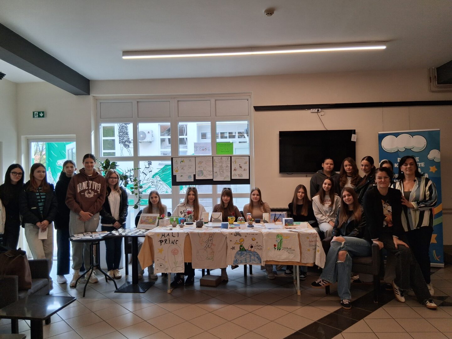 Učenice 8.c razreda Područne škole Sarvaš i učenice 7.a i 7.b razreda matične škole, u pratnji učiteljice Jelene Pehar Smiljanić i pedagoginje Dijane Skorup, organizirale su 16. travnja 2026. god. prigodnu izložbu radova na temu djela Mali princ. Izložbene radove izradili su učenici 8.c razreda PŠ Sarvaš za potrebe nastave hrvatskoga jezika i pod mentorstvom učiteljice Zvjezdane Sikra-Golemac. U okviru učeničke zadruge učenice matične škole, uz vođenje učiteljice informatike Katarine Miloloža i knjižničarke Lidije Ivanković, izradile su privjeske i knjižne straničnike na istu temu. Nakon predstave učenice su razgovarale s glumcima o razlozima umjetničke slobode redatelja da izmijeni originalno djelo te su ih pozvali da pogledaju njihove kreativne uratke. Osim izložbe učenice su pokazale svoje umjetničke i poduzetničke vještine u susretu s učenicima osnovne škole iz Vukovara koji su došli pogledati predstavu.