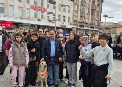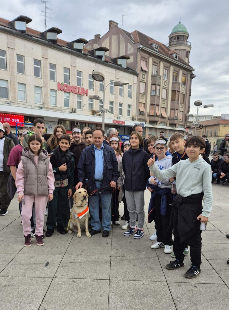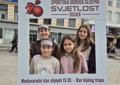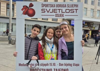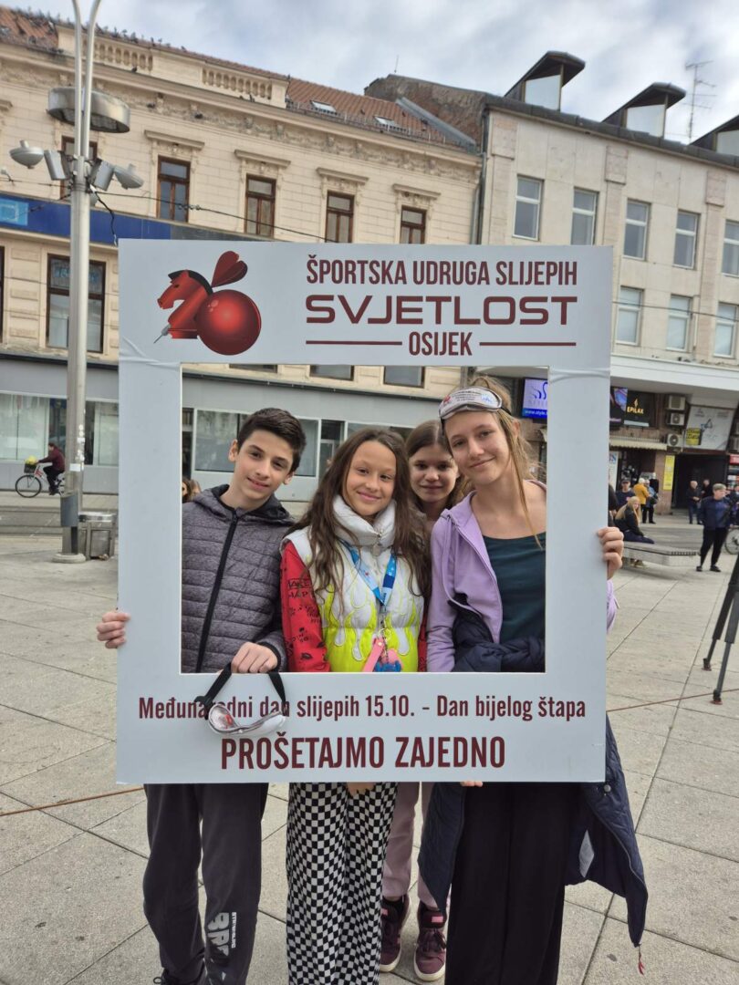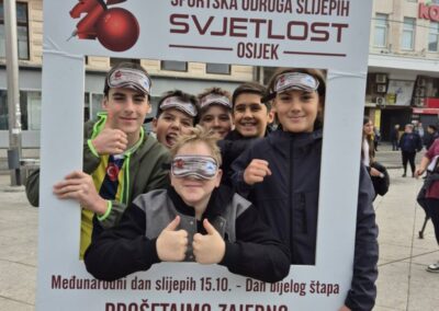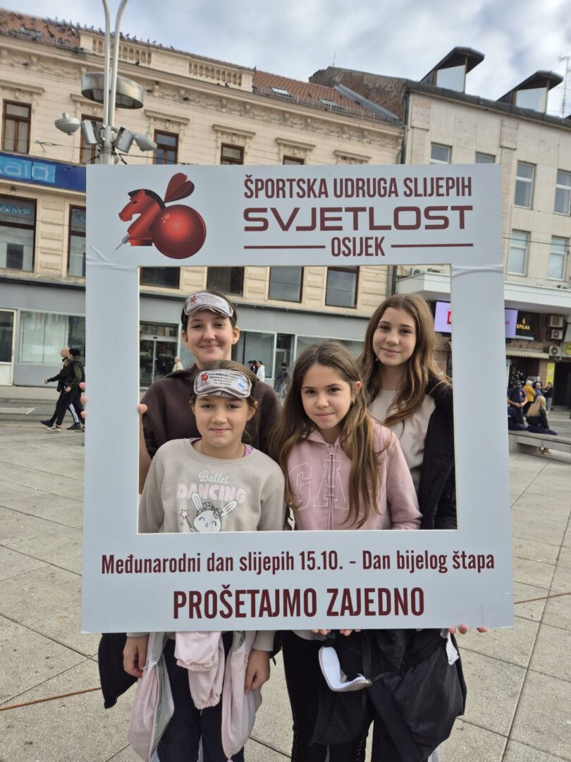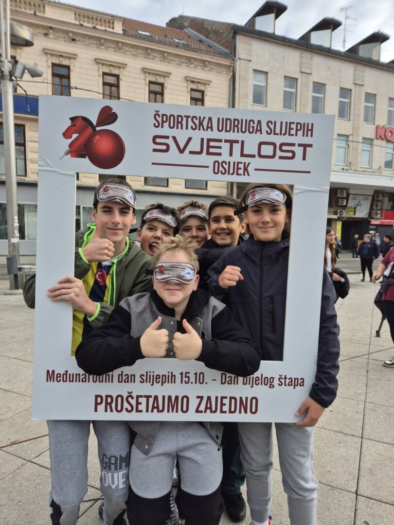 Učenici šestih razreda sa svojim učiteljem Ivanom Matančićem i Marijom Iličić, edukacijskom rehabilitatoricom, sudjelovali su u obilježavanju Međunarodnog dana bijelog štapa koji se tradicionalno održava svake godine kroz aktivnost „Prošetajmo zajedno!“ u organizaciji Športske udruge slijepih „Svjetlost“ iz Osijeka. Događaj se ove godine održao u srijedu 15. listopada 2025. godine na Trgu Ante Starčevića u Osijeku s početkom u 10:30 sati.