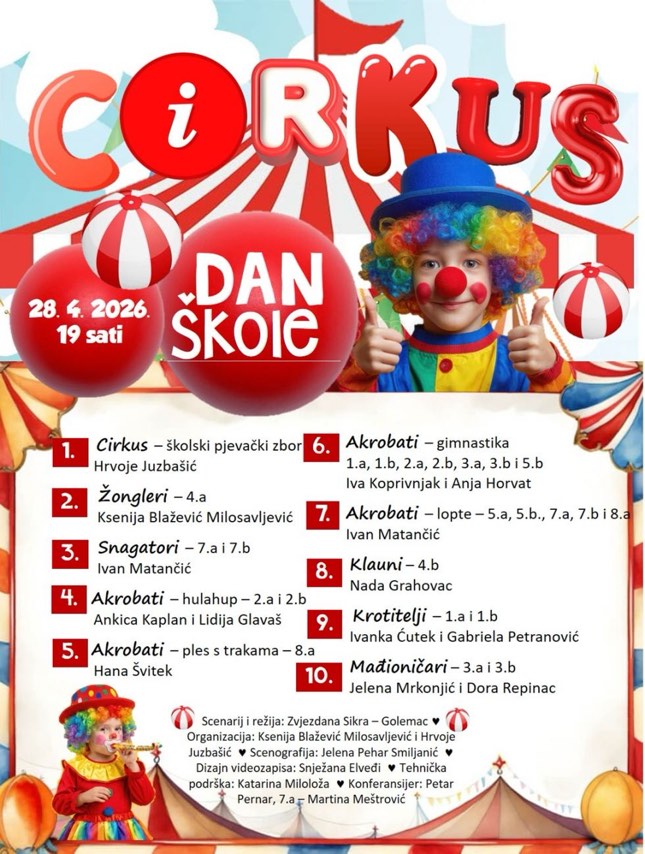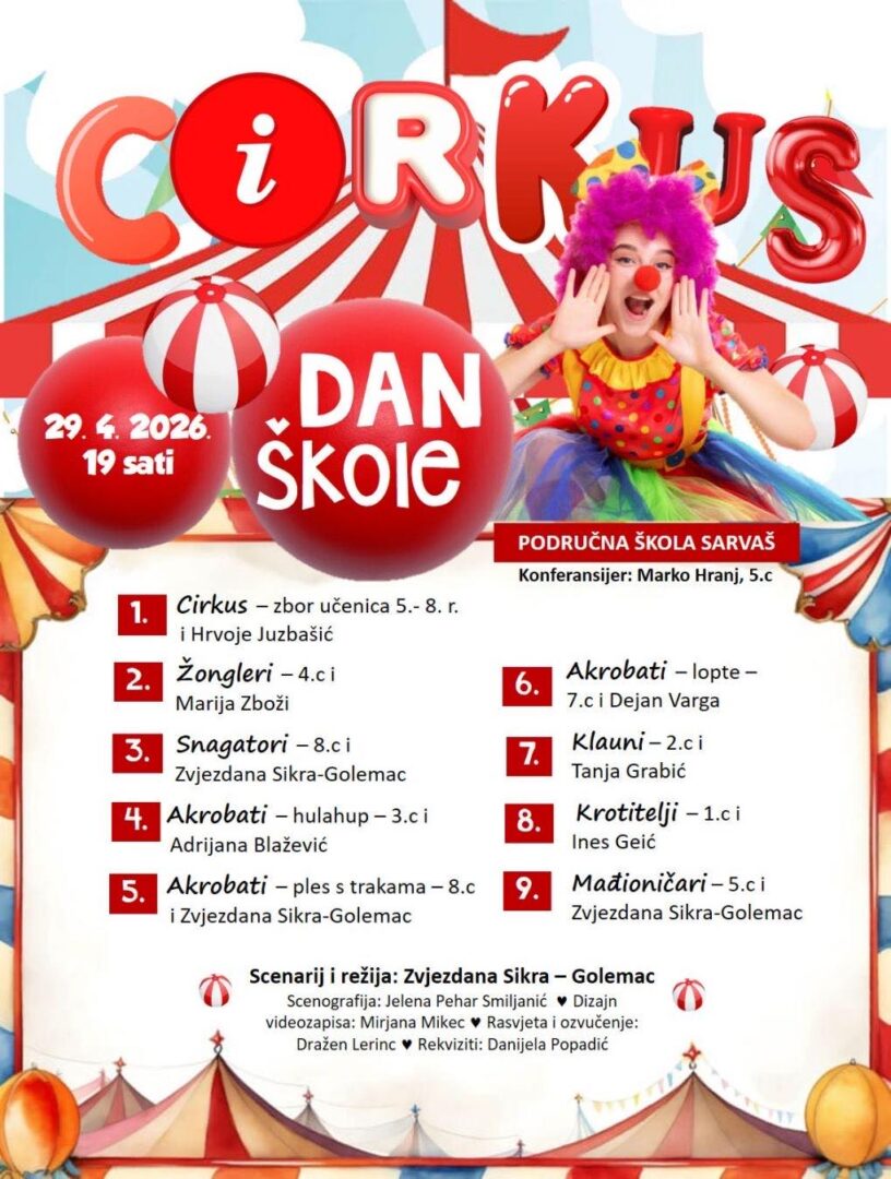 pozivamo vas na priredbe povodom Dana škole koje će se održati u matičnoj i područnoj školi. Vrijeme održavanja i program možete pronaći na plakatima ispod teksta. Veselimo se vašem dolasku!