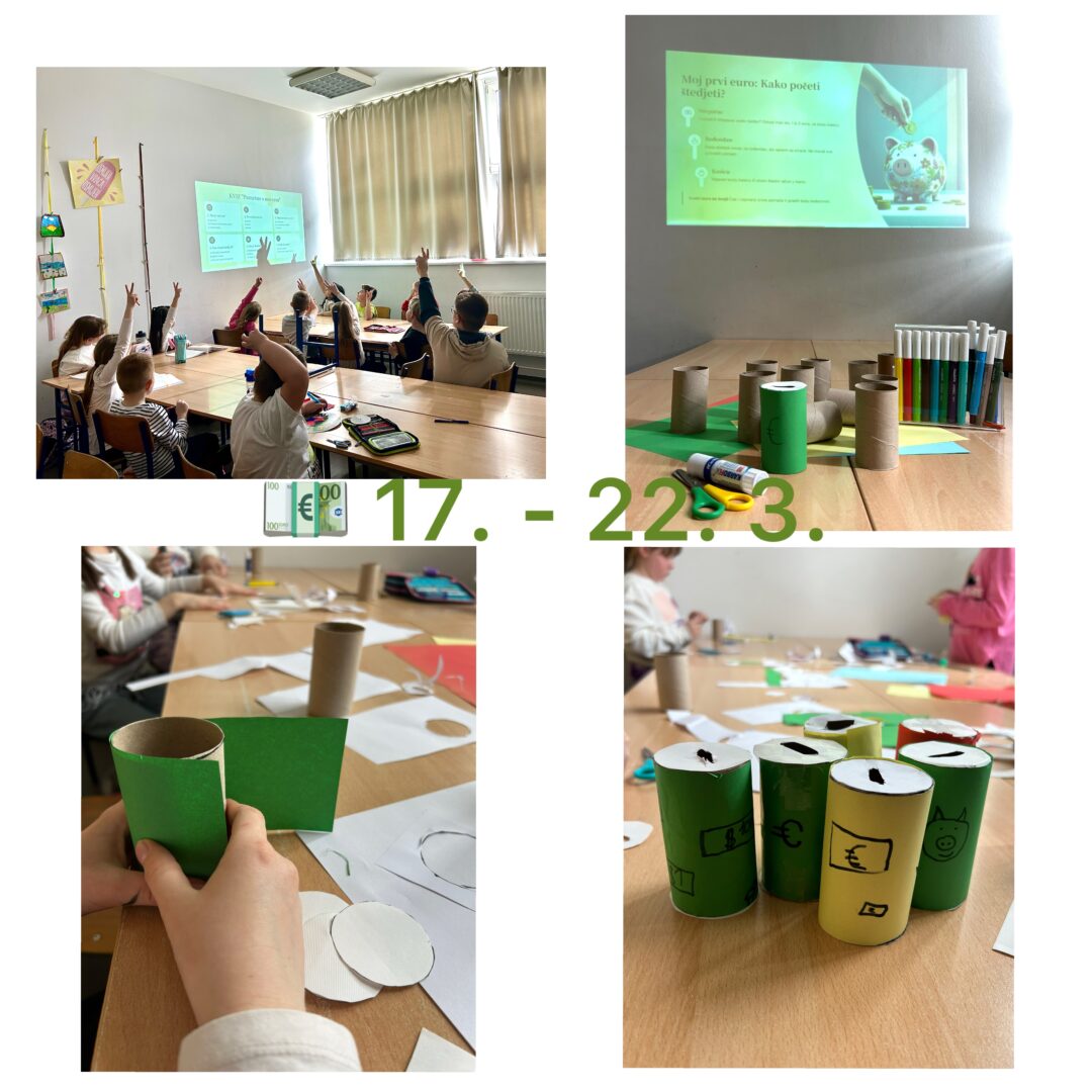 Učenici produženog boravka u Područnoj školi Sarvaš također su obilježili Svjetski i europski tjedan novca edukativnim i kreativnim aktivnostima usmjerenim na razvoj financijske pismenosti. Kratkom prezentacijom informirali su se i upoznali s osnovama štednje, odgovorne potrošnje i novom valutom u Hrvatskoj, a svoje su znanje uspješno primijenili u kvizu „Pametno s novcem“. Osim toga učenici su izrađivali vlastite kasice koristeći se rolom toaletnog papira, papirom, ljepilom i flomasterima za ukrašavanje.