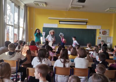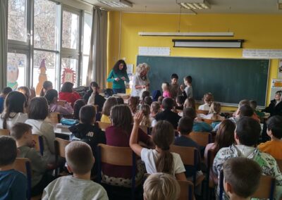 Učenici razredne nastave PŠ Sarvaš primili su u ponedjeljak 24. studenog 2025. gošće iz ZOO Osijek i Kopačkog rita. Edukatorice su održale predavanje o šišmišima i njihovoj ulozi u ekosustavu, a učenici su aktivno sudjelovali tijekom cijelog predavanja. Na kraju su poklonile školi kućicu za šišmiše koju će domar staviti na stablo na visinu od 3 metra. U proljeće će ponovno doći i zajedno s učenicima s pomoću posebnog uređaja izmjeriti koliko ima šišmiša u kućici i odrediti im vrstu.