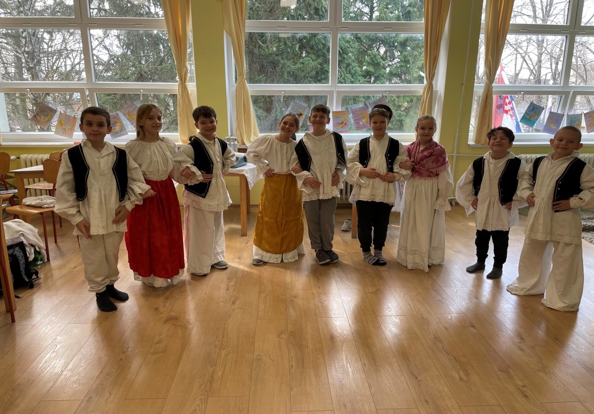 Na kraju tjedna učenici su obukli nošnje i uz pjesmu naučili otplesati dječje tradicijske igre i kola „Ajd na lijevo“ i „Igra kolo“ čime su na poseban način obilježili i doživjeli dio hrvatske bogate kulturne baštine.