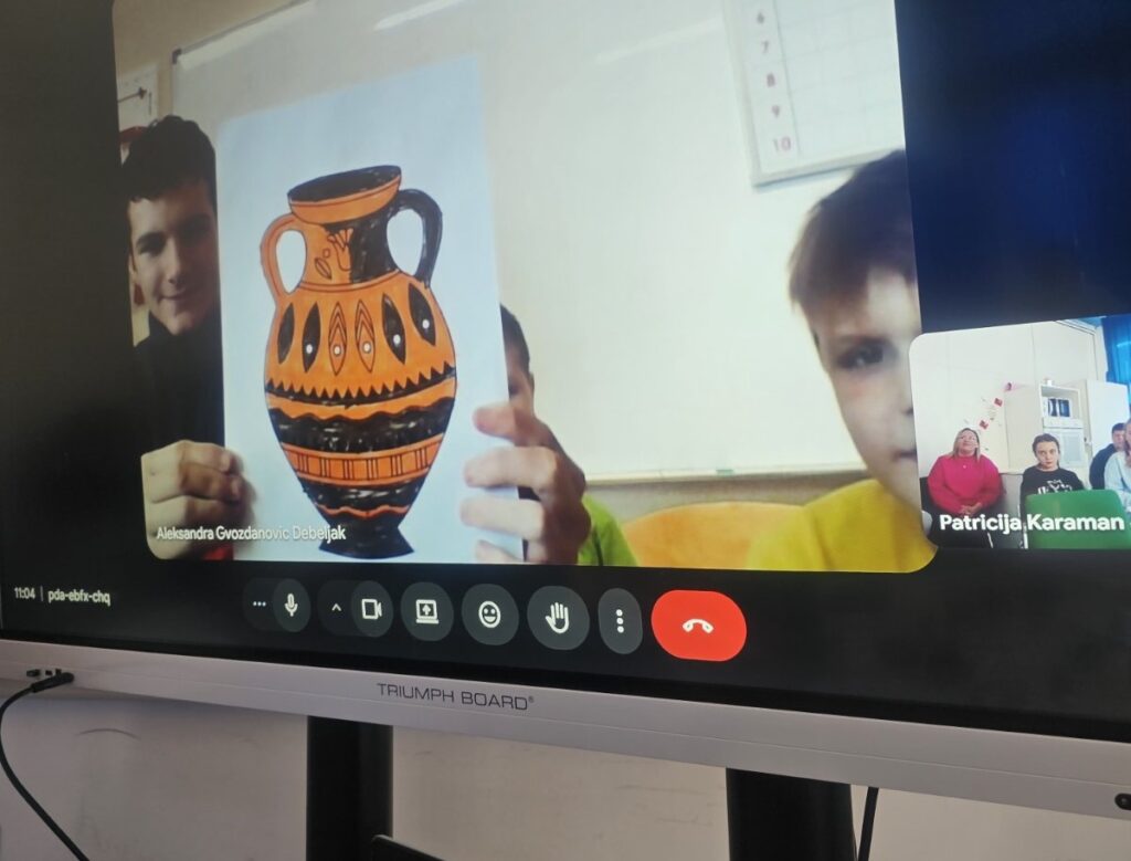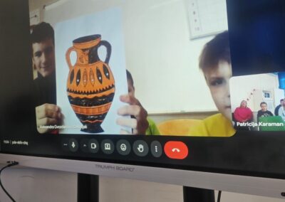 Onda je slijedilo najzanimljivije: virtualno smo posjetili Natural History Museum u Londonu. Tijekom virtualne šetnje naši su učenici upoznati s bogatim muzejskim postavom, posebice s velikim kosturima dinosaura i raznolikim prikazima životinja iz prošlosti i sadašnjosti. Potom su upoznali i predmete iz minulih stoljeća kakvi su se koristili na otoku Cipru i doznali gdje se Cipar nalazi te kako su ljudi živjeli u prvim selima na tom mediteranskom otoku.